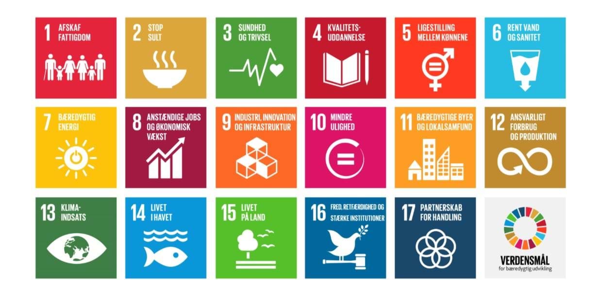 Du kan læse mere om FN's 17 Verdensmål samt søge inspiration til, hvordan du kan bidrage til en mere bæredygtig udvikling her.
