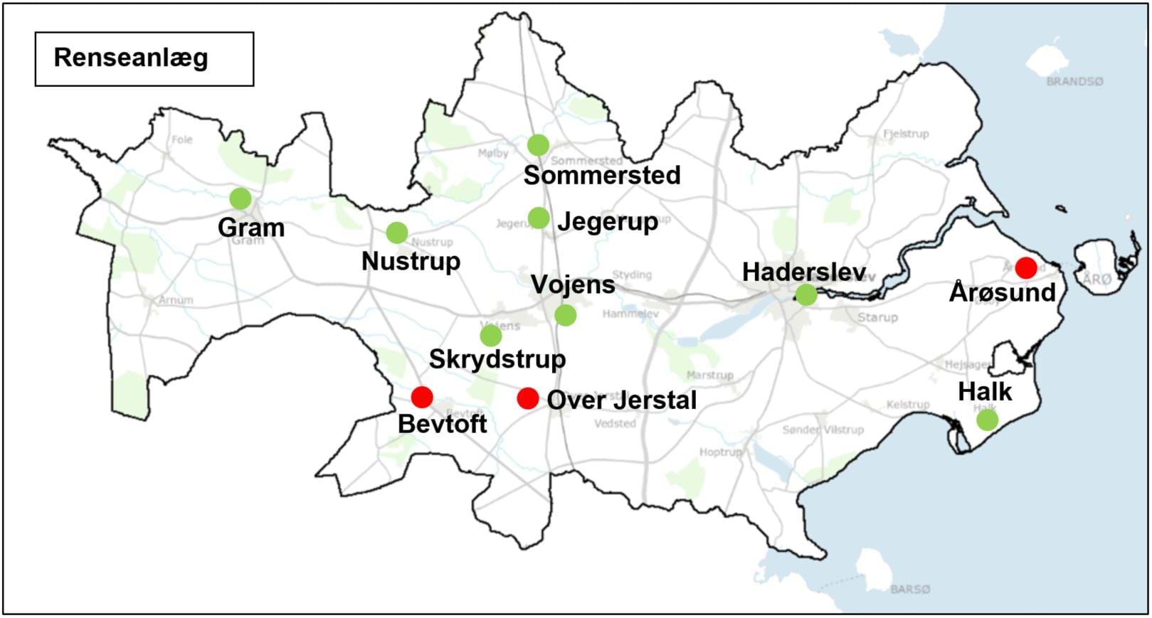 Indenfor den første planperiode (Spildevandsplan 2021-2024) arbejdes der med afvikling af 3 renseanlæg. Det drejer sig om Årøsund Renseanlæg, Bevtoft Renseanlæg og Over Jerstal Renseanlæg.