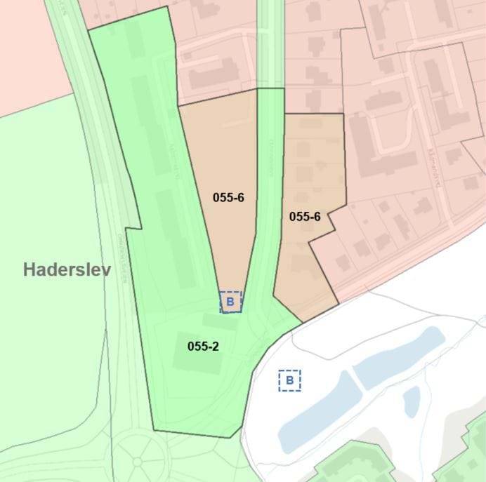- Der planlægges for anlæg til rensning og forsinkelse af overfladevand, og der reserveres arealer hertil. Placering af bassinanlæg (B) fremgår af kortet ovenfor