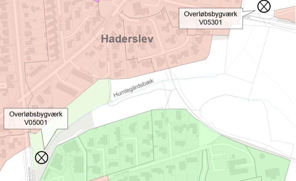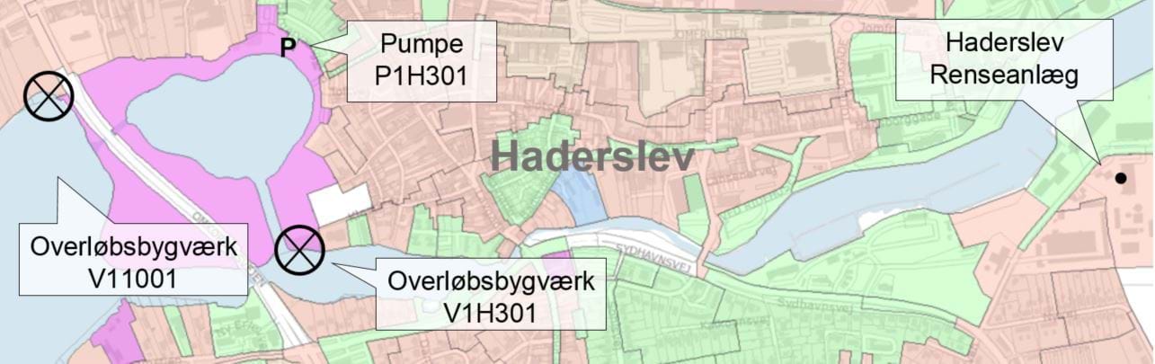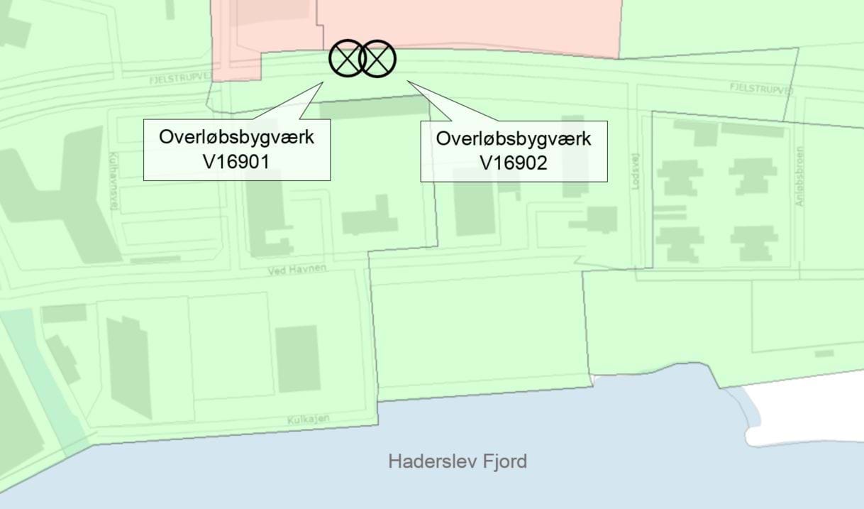 Overløbsbygværket V16901 og V16902 har aflastning af opspædet spildevand fra kloaknettet til Haderslev Fjord.