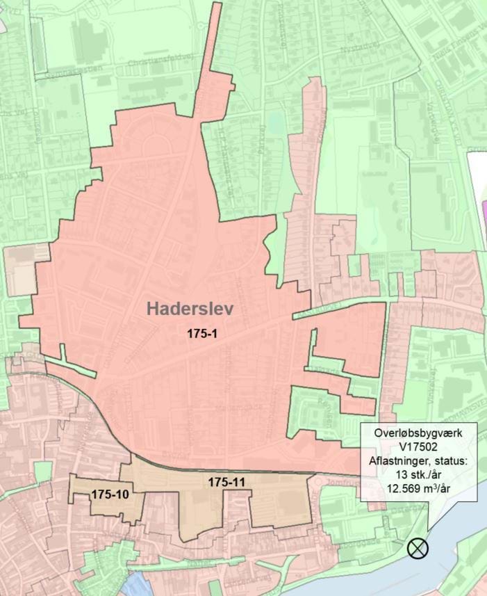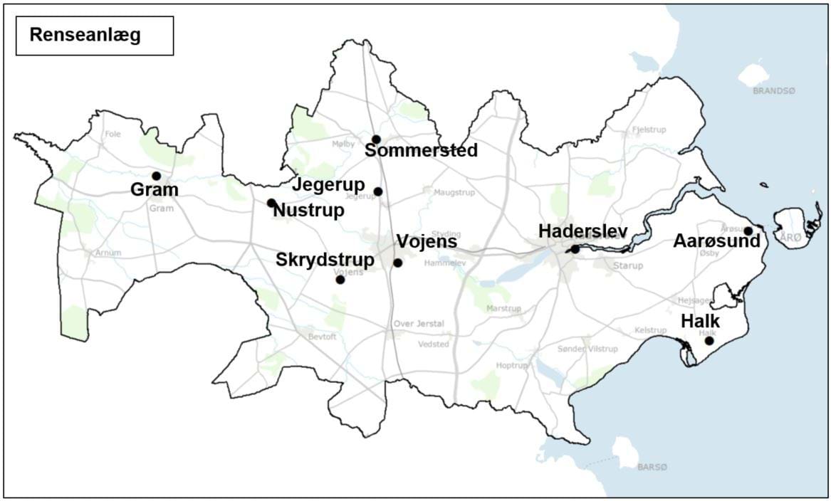 - Haderslev by, herunder oplande der er planlagt eller allerede tilsluttet Haderslev renseanlæg.